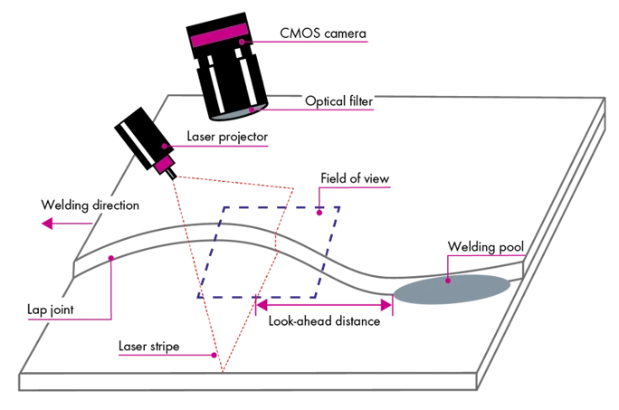 among other methods, 光学焊缝跟踪系统基于激光三角测量(光切法)运行。更准确地说,它应被称为激光线三角测量,但为简单起见,我们将使用这个较短的术语。
